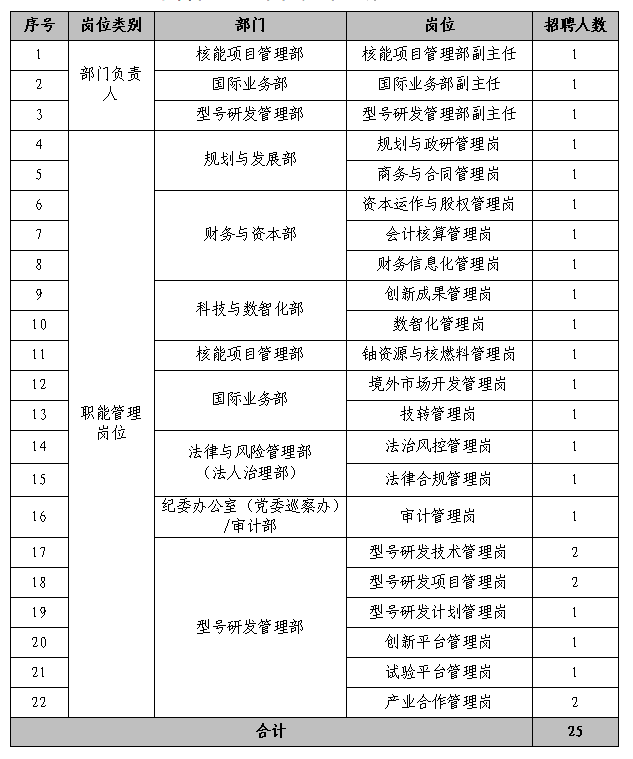 各崗位的任職資格要求詳見國家核電本部人員選聘崗位清單(附件1)。年齡、工作年限計算截至2025年8月11日。